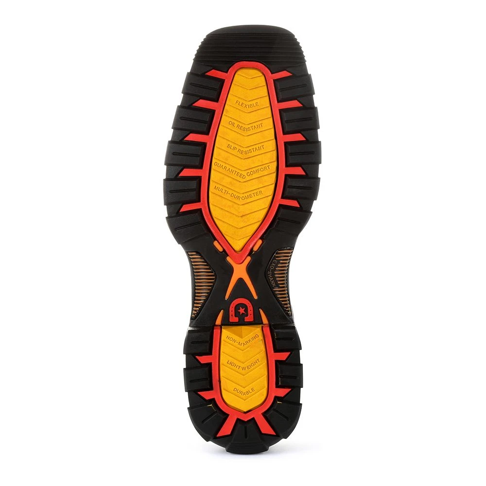 - Multi-Durometer Rubber Outsole with high abrasion rubber outer lugs for high-impact durability and softer durometer mid lugs for added flexibility and increased slip and oil resistance
