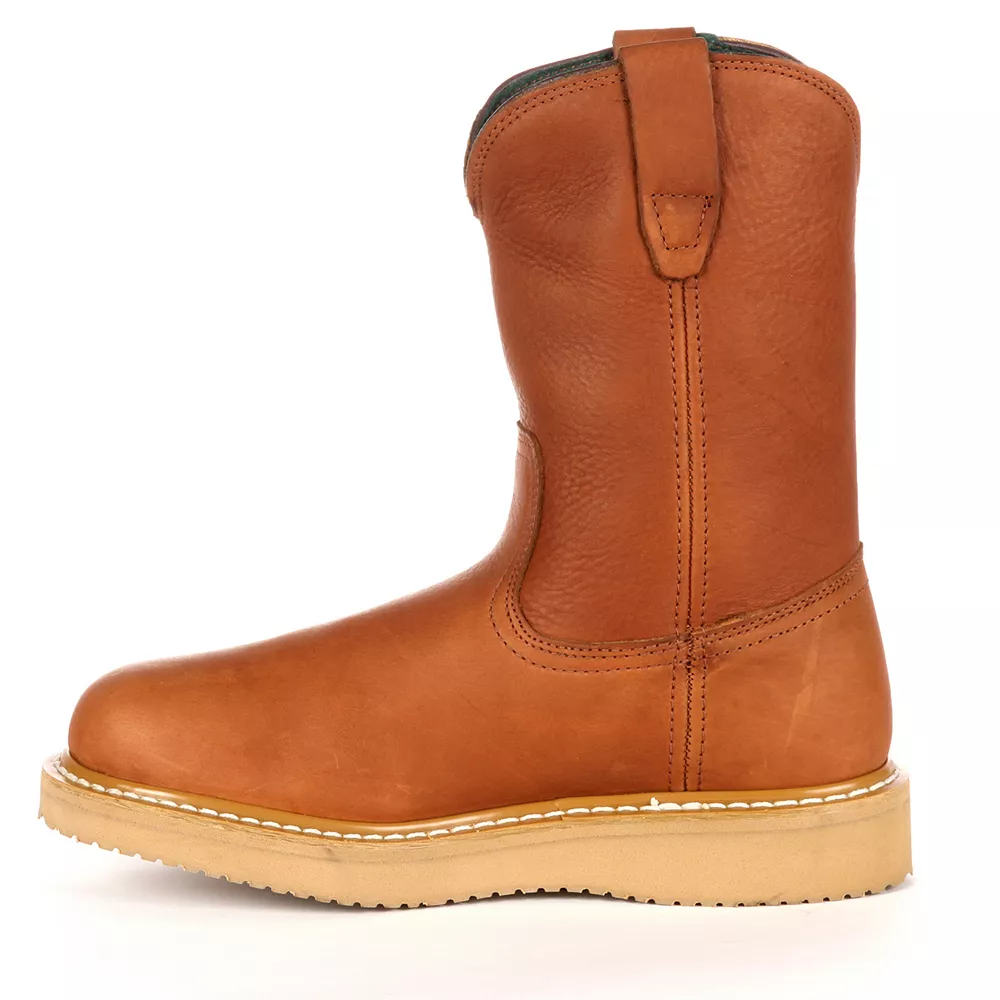 Without question, these Georgia Boots Farm and Ranch Wellington work boots feature a tough design that’s ideal anywhere from the barnyard to driving a big rig.