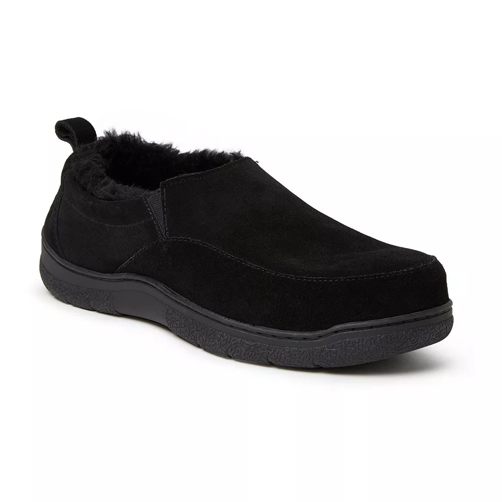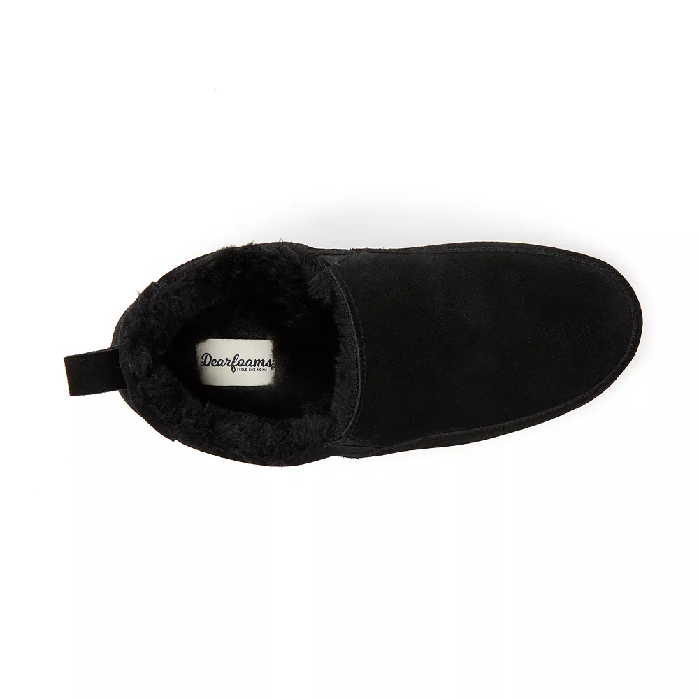 Step into comfort with these Dearfoams genuine suede closed back slippers, with a plush faux shearling lining & footbed so every step is a dream.