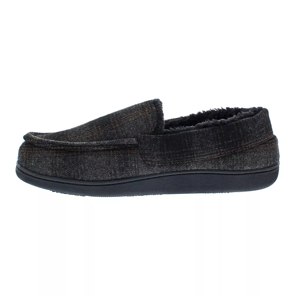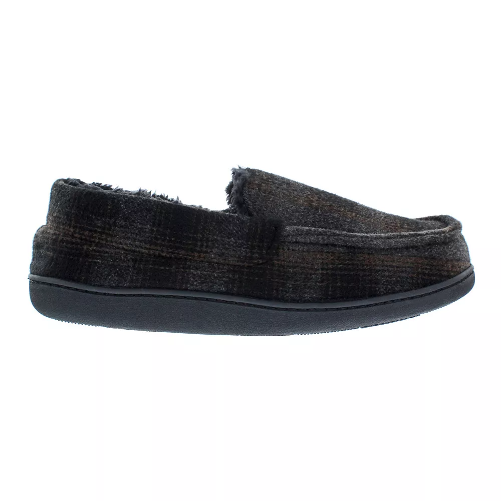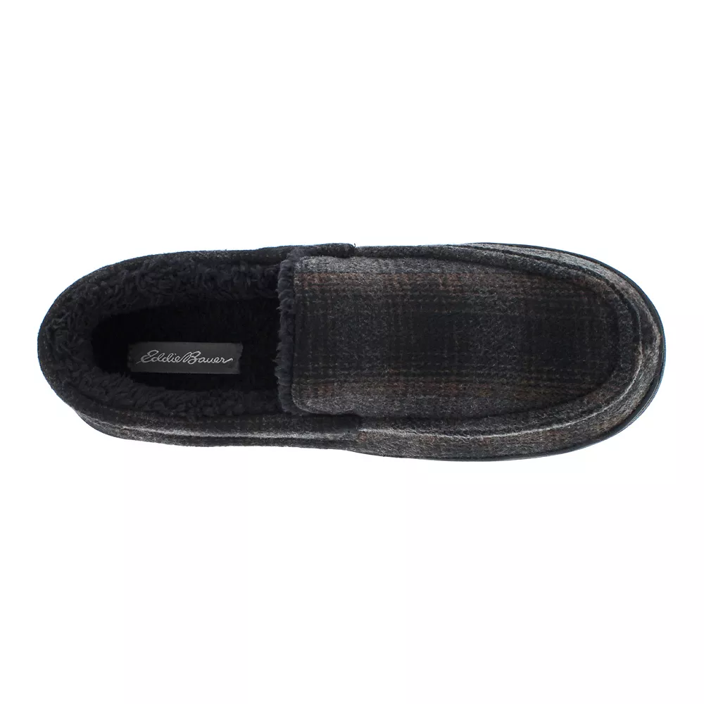 These Men’s Eddie Bauer Simulated Wool Plaid Moccasin Slippers are the perfect mix of warmth and durability.