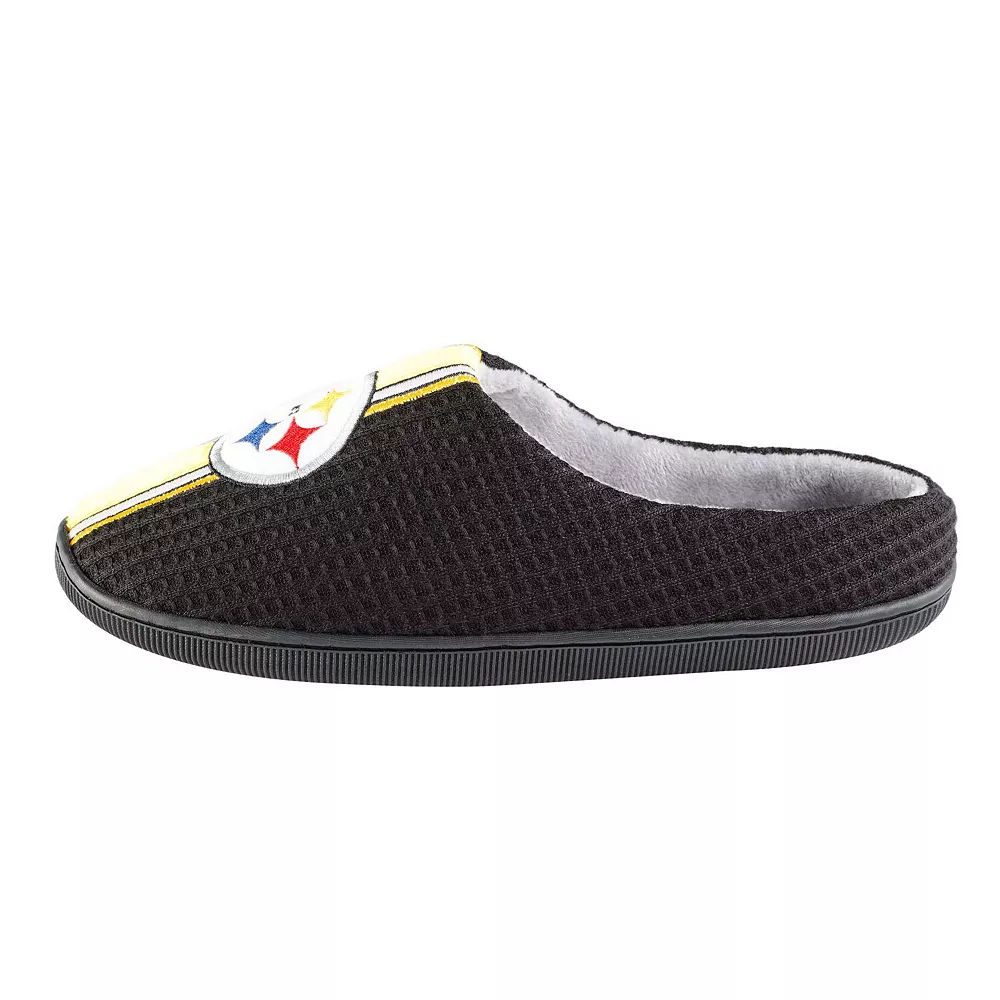 Stay comfortable as you cheer on the Pittsburgh Steelers in these Team Stripe slide slippers from FOCO. They offer soft memory foam for optimal levels of comfort as well as closed toes for coverage. Plus, the vibrant Pittsburgh Steelers colorway and graphics showcase your unwavering fandom in cozy style.