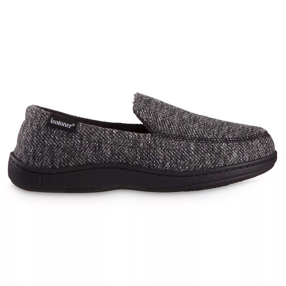 Experience comfort and all-day relaxation with these Men’s isotoner Advanced Memory Foam Herringbone Harvey Moccasin Comfort Slippers.