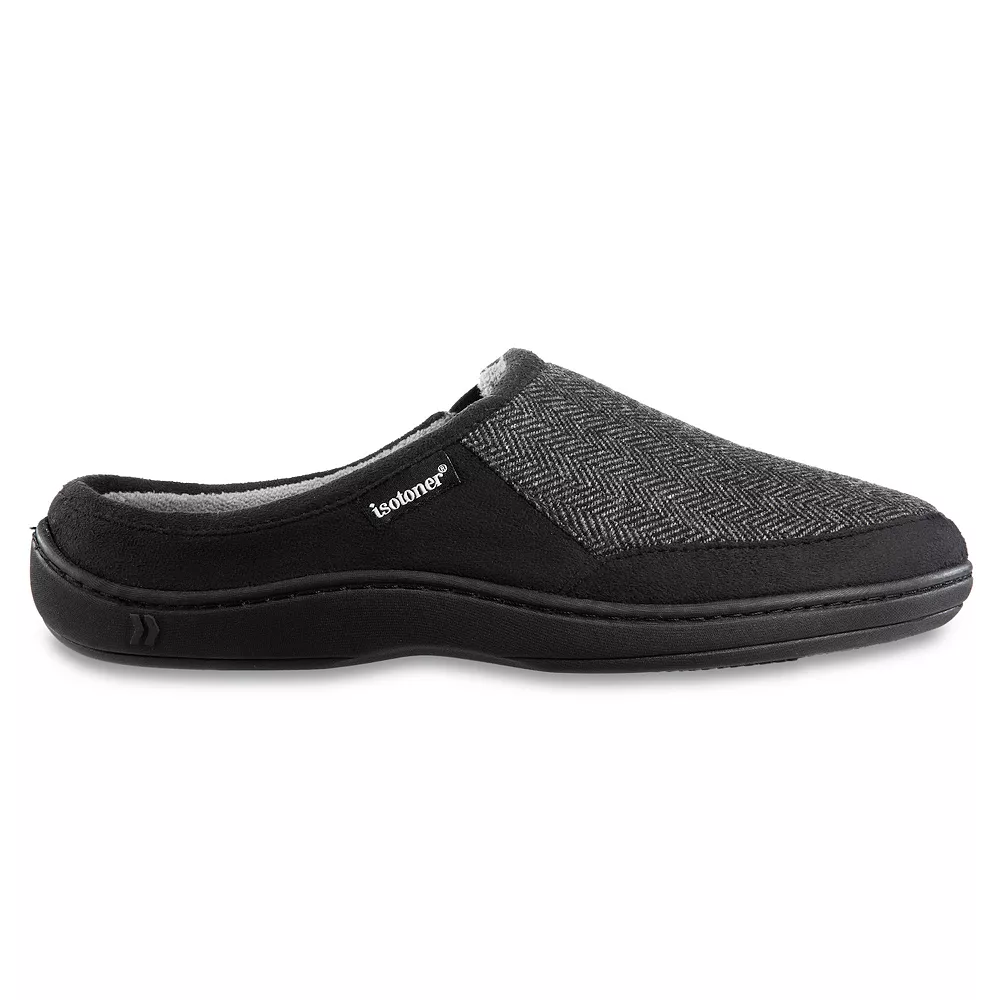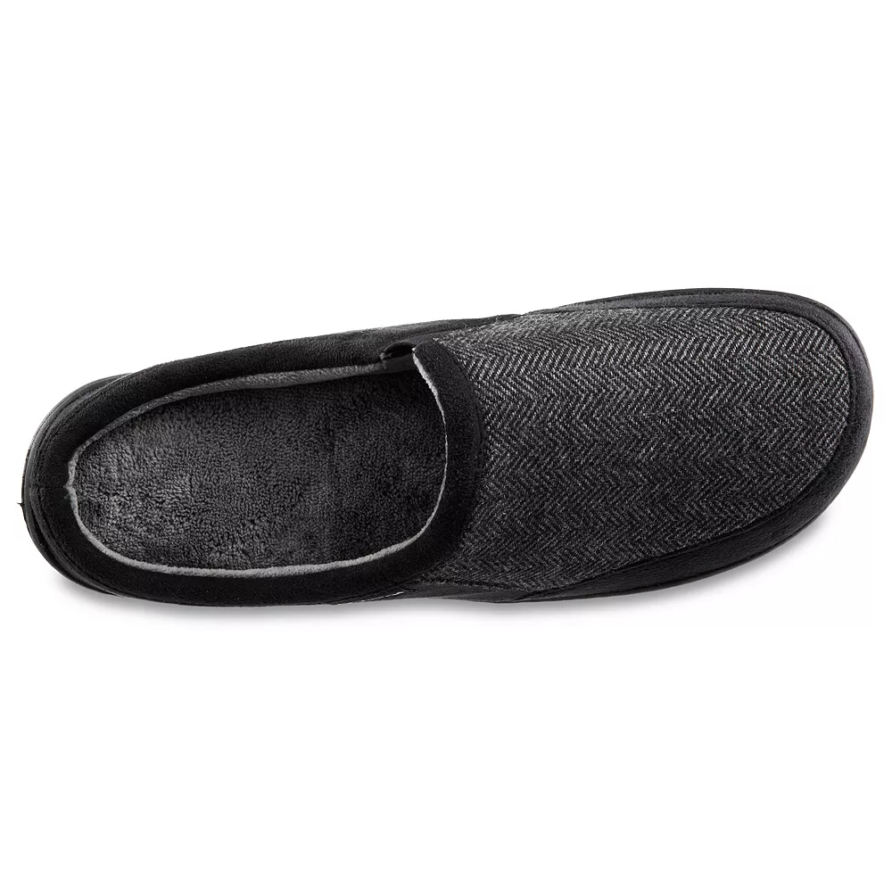 Find handsome style plus functional design in these Men’s Logan Hoodback Slippers. Made with durable and stylish herringbone-patterned microsuede, these slippers provide unparalleled soft comfort.