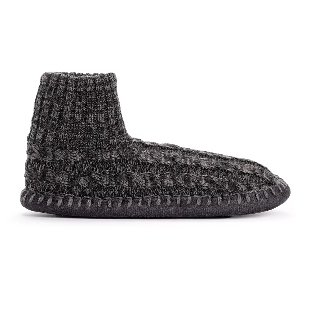Comfortable and casual, these lightweight cable knit MUK LUKS cuffed boot slippers are perfect for cold weather.