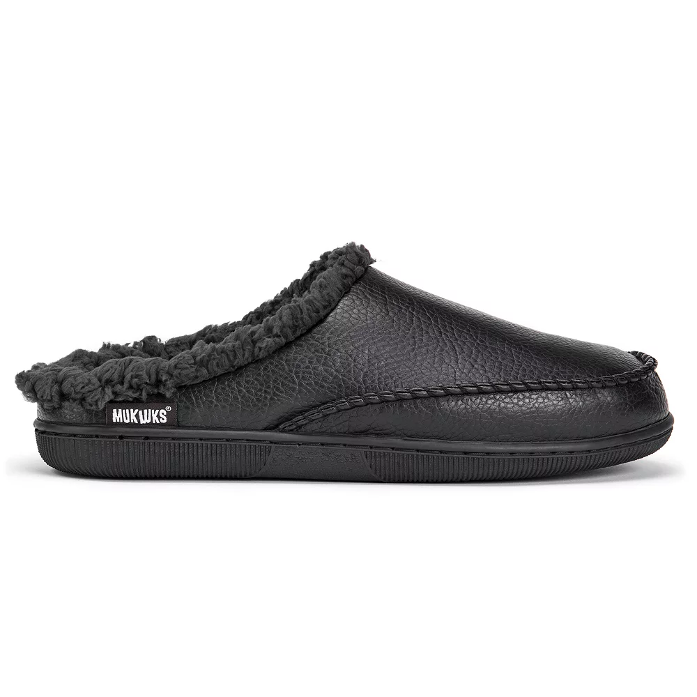 These men’s faux-leather slippers from MUK LUKS are all about warm and cozy comfort.