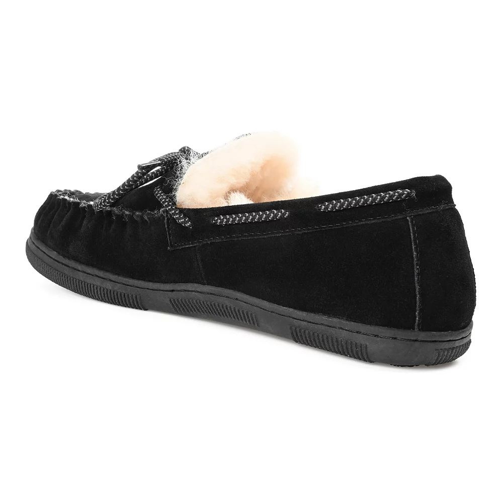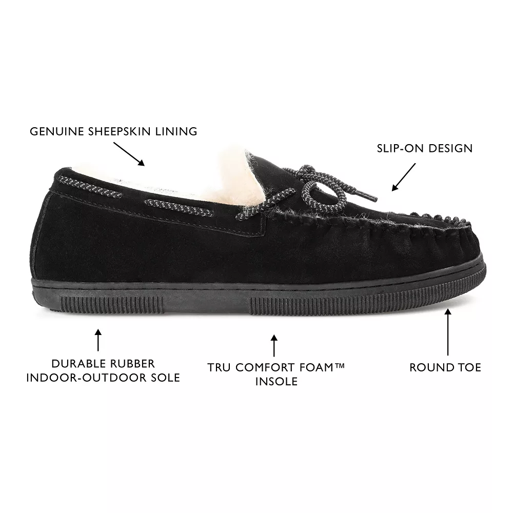 Treat your feet to ultimate cozy comfort with these Territory Meander men’s sheepskin moccasin slippers.