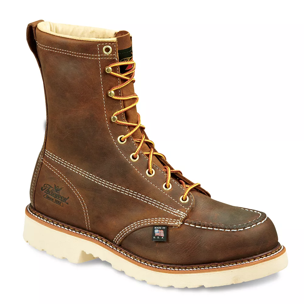 These men’s Thorogood American Heritage work boots feature a safety-toe and a durable MAXwear outsole.