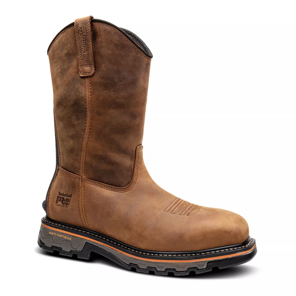 Get the job done in durable style with these Timberland PRO True Grit men’s composite-toe work boots.
