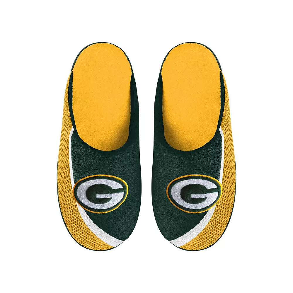 Kick back and keep your Green Bay Packers spirit high with these Big Logo Color edge slippers from FOCO. A must-have for any devout Green Bay Packers fan, they provide a soft, warm feel and show off large team graphics and colors.