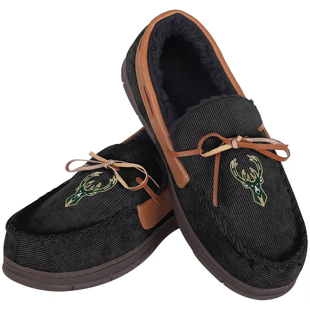 Whether watching the Milwaukee Bucks or enjoying a night in, stay comfortable with these Corduroy moccasin slippers. These FOCO slippers feature a faux fur lining and embroidered team graphics, perfect for adding Milwaukee Bucks fandom whenever worn.