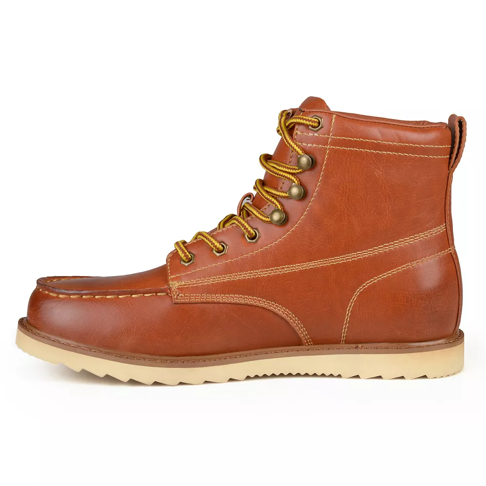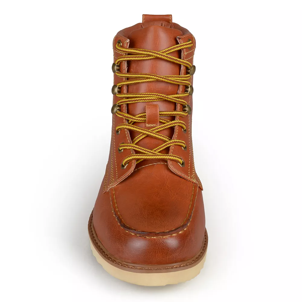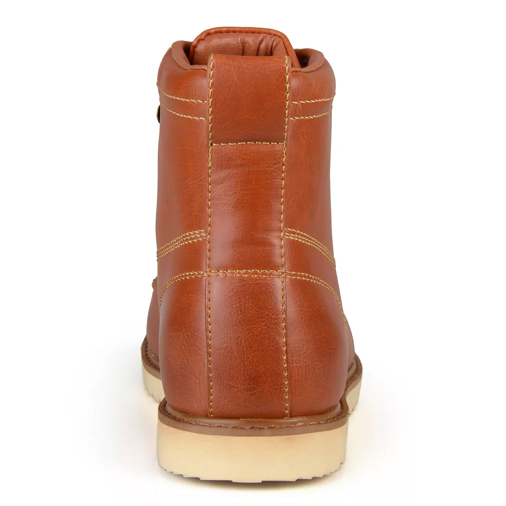 These men’s Wyatt boots by Vance Co. highlight premium faux-leather uppers that rise above the ankles with contrasting top-stitching for a rugged yet distinguished look.