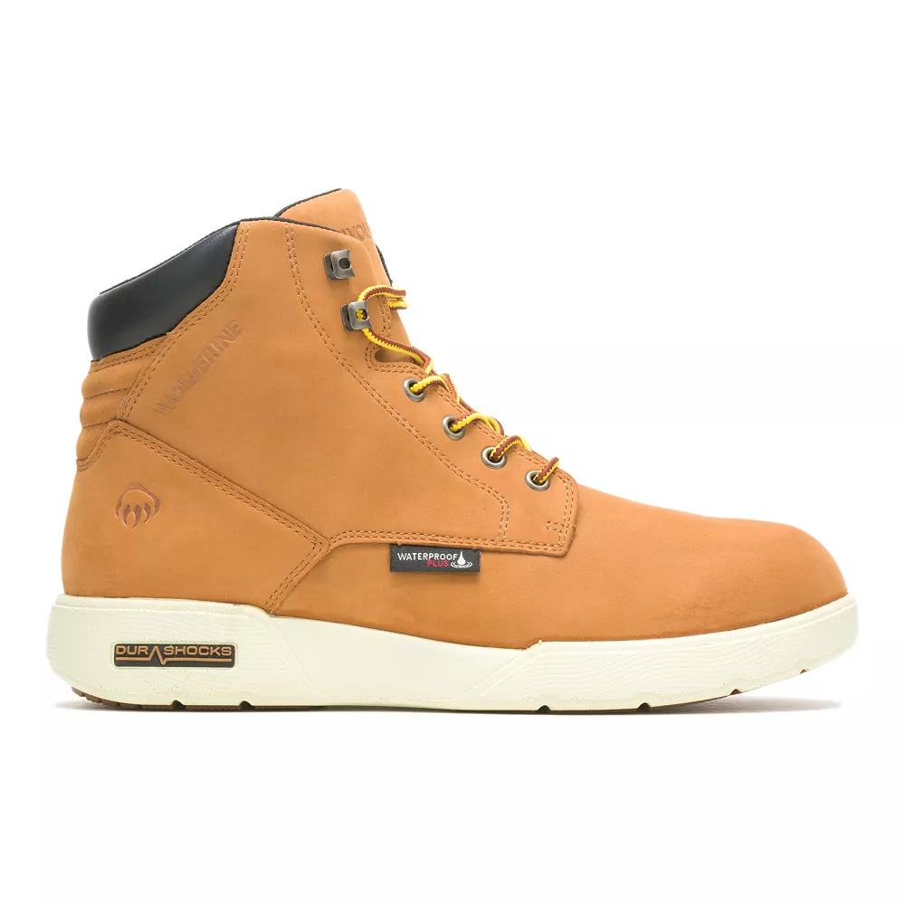 Step into comfort and a durable design with these Wolverine Kickstart DuraShocks FX men’s waterproof work boots.